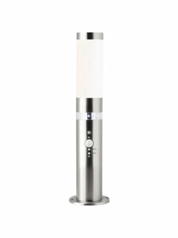 IP-Schutzart: 44 – spritzwassergeschütztmit Bewegungsmelder für E27-Leuchtmittel: Erfassungswinkel: 120°, Erfassungsbereich: 2m – 8m, Leuchtzeit zwischen 5 Sekunden und 5 Minuten einstellbar, Empfindlichkeit einstellbarmit Dämmerungsschalter für LED Kranz, LED schaltet bei Dämmerung automatisch einenergiesparend und langlebig durch integrierte LEDsFür Sockel im Außenbereich gemacht erstrahlt die Stehleuchte Bole Einfahrten und Terrassen gleichermaßen. Mit einer Höhe von 0,5m ist sie eher ein kleiner Vertreter der Stehleuchten und erfüllt doch ihren Zweck.Die Leuchte eignet sich für den Einsatz von Normallampen. Leuchtmittel sind im Lieferumfang nicht enthalten. Auch energiesparende LED-Leuchtmittel können verwendet werden. Der integrierte Bewegungsmelder sorgt im Dunkeln für Sicherheit und Durchblick. Eine individuelle Einstellung der Leuchtdauer und Empfindlichkeit ist möglich. Durch den Dämmerungsschalter aktiviert sich der dekorative LED-Kranz der Leuchte. Dieser dient als Orientierungslicht. Das notwendige Montagematerial liegt der Leuchte vollständig bei.
