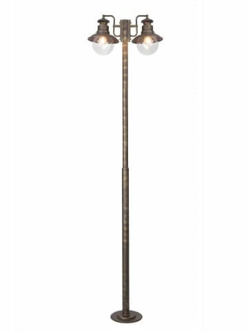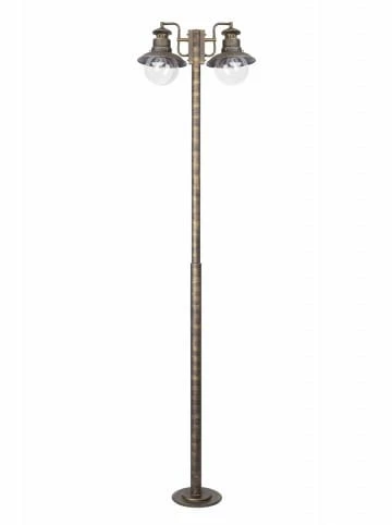 IP-Schutzart: 44 – spritzwassergeschütztKandelaber mit 2,05m Höhefür LED-Leuchtmittel geeignetMastleuchten gehören nicht zu den bescheidenen Erscheinungen im Garten. Mit einer Höhe von 2,1m wird die Außen-Stehleuchte Artu zum Mittelpunkt Ihres Gartens. Aus massivem Metall gefertigt trotzt die 2-flammige Leuchte Wind und Wetter.Im Lieferumfang sind keine Leuchtmittel enthalten. Ausgelegt ist die Leuchte für den Einsatz von Normallampen. Auch energiesparende LED-Leuchtmittel können verwendet werden. Im Lieferumfang enthalten ist sämtliches notwendiges Installationsmaterial.