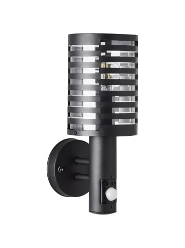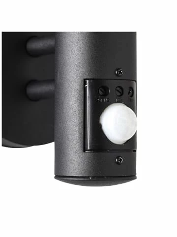 IP-Schutzart: 44 – spritzwassergeschütztmit Bewegungsmelder: Erfassungswinkel 100°, Erfassungsbereich max. 6m, Empfindlichkeit zwischen 10 und 200 Lux einstellbar, Leuchtdauer zwischen 5 Sekunden und 1 Minute einstellbarfür LED-Leuchtmittel geeignetSetzen Sie die Wandleuchte Venlo ein, um Ihren Hauseingang oder die Terrassentür zu erleuchten. Bei Dunkelheit sorgt eine ordentliche Ausleuchtung für Sicherheit auf dem letzten Meter des Heimwegs.Im Lieferumfang sind keine Leuchtmittel inbegriffen. Konzipiert ist die Leuchte für die Verwendung von Normallampen. Auch energiesparende LED-Leuchtmittel können verwendet werden. DerBewegungsmeldersorgt nachts für Sicherheit. Eine individuelle Einstellung der Leuchtzeit und Empfindlichkeit ist möglich. Sämtliches benötigtes Montagematerial ist im Lieferumfang schon inbegriffen.