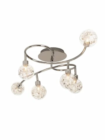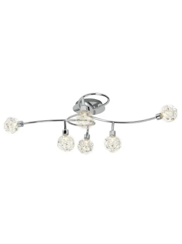 Köpfe schwenkbarDekodraht im Glasfür LED-Leuchtmittel geeignetdimmbar über externen Dimmer bei Verwendung eines geeigneten LeuchtmittelsOb einzeln oder im Zusammenspiel – Strahler sind immer eine gute Wahl. Mit dem gerichteten Licht lassen sich Bereiche im Raum gezielt in Szene setzen. Der 6-flammige Deckenstrahler Joya hilft Ihnen bei der Umsetzung einer individuellen Beleuchtungslösung für Ihre Raumsituation. Für maximale Flexibilität im Einsatz dieser Leuchte ist die Montage an Wänden und Decken möglich.Die Leuchte eignet sich für den Einsatz von Stiftsockellampen. Leuchtmittel sind im Lieferumfang nicht enthalten. Die Verwendung von LED-Leuchtmitteln ist jedoch möglich. Unter Einsatz entsprechender Leuchtmittel ist die Leuchte außerdem dimmbar. Der zu beleuchtende Bereich kann durch die Köpfe spezifisch eingestellt werden. Im Lieferumfang enthalten ist sämtliches notwendiges Installationsmaterial.