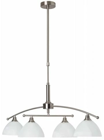 in der Höhe einstellbarArm drehbarGlasdurchmesser: 172mmfür LED-Leuchtmittel geeignetdimmbar über externen Dimmer bei Verwendung eines geeigneten LeuchtmittelsAls dekoratives Gestaltungselement fallen Hängeleuchten in jedem Raum unmittelbar auf. Ihr Licht geben sie direkt nach unten ab, sodass sie sich als Esstischbeleuchtung bestens einsetzen lassen. Mit einer Länge von 90cm qualifiziert sich diese Hängeleuchte besonders für den Einsatz über größeren Tischen. Durch den Arm ist der auszuleuchtende Bereich individuell anpassbar.Im Lieferumfang sind Leuchtmittel nicht enthalten. Konzipiert ist die Leuchte für die Verwendung von Tropfenlampen. Die Verwendung von LED-Leuchtmitteln ist aber möglich. Die Leuchte ist dimmbar sofern geeignete Leuchtmittel verwendet werden. Das erforderliche Installationsmaterial ist im Lieferumfang enthalten.