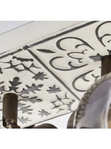 Köpfe schwenkbarfür LED-Leuchtmittel geeignetdimmbar über externen Dimmer bei Verwendung eines geeigneten LeuchtmittelsStrahler ermöglichen es Ihnen Räume gezielt zu illuminieren. Im Gegensatz zu feststehenden Leuchten lässt sich der zu beleuchtende Bereich steuern und jederzeit anpassen. Punktuelles Anstrahlen von Objekten ist genauso möglich wie das Ausleuchten von gesamten Räumen mit mehreren Strahlern. Setzen Sie mit dem 2-flammigen Deckenstrahler Tolosa ihr persönliches Beleuchtungskonzept um. An Wand- und Decke ist die Montage möglich. Dieser Deckenstrahler vereint Historie mit Moderne. Das einprägsame Muster ist inspiriert von portugiesischen Azulejos und verleiht der Leuchte einen antiken Touch. Kombiniert mit modernen Elementen, wird sie ohne Zweifel dem aktuellen Trend gerecht.Im Lieferumfang sind Leuchtmittel nicht enthalten. Ausgelegt ist die Leuchte für die Verwendung von Normallampen. LED-Leuchtmittel können problemlos verwendet werden. Die Leuchte ist dimmbar sofern geeignete Leuchtmittel verwendet werden. Durch die Köpfe ist der zu beleuchtende Bereich individuell veränderbar. Das benötigte Installationsmaterial liegt der Leuchte bei. Sie können direkt starten.