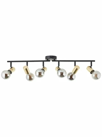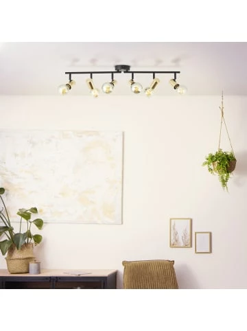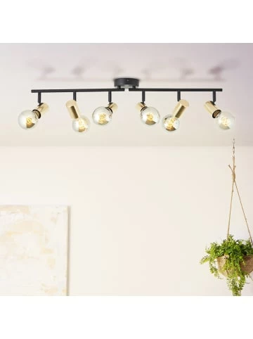 Durch die flexiblen Anwendungsmöglichkeiten sind Strahler eine gefragte Ergänzung zu den herkömmlichen Wand- und Deckenleuchten. Mit dem ausrichtbaren Licht lassen sich gezielt Bereiche im Raum in Szene setzen. Der 6-flammige Deckenstrahler Kerry ermöglicht Ihnen die Umsetzung einer individuellen Beleuchtungslösung für Deine Raumsituation. Flexibel im Einsatz ist die Anbringung an der Wand oder Decke möglich. Dieser Deckenstrahler vereint nostalgische und moderne Elemente und erzeugt so einen zeitgemäßen Wohnstil. „“Neo Retro““ heißt der Trend, der die Kombination von Retro- und modernen Designelementen beschreibt.Die eingesetzten E27-Sockel ermöglicht das problemlose Wechseln der Leuchtmittel. Im Lieferumfang sind keineLeuchtmittel inbegriffen. Ausgelegt ist die Leuchte für den Einsatz von Normallampen. Der Einsatz von LED-Leuchtmitteln ist aber möglich. Die Leuchte ist dimmbar sofern geeignete Leuchtmittel verwendet werden. Das benötigte Installationsmaterial liegt der Leuchte bei. Du kannst direkt starten.