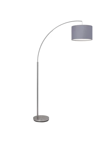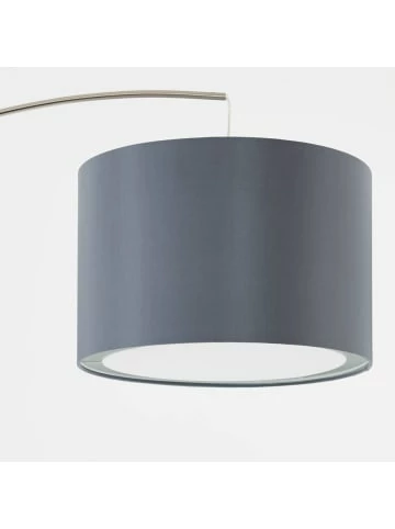 mit Fußschaltergroße Bogenstehleuchte mit Höhe: 1,8m und 1,13m Ausladungfür LED-Leuchtmittel geeignetVorzugsweise platziert hinter einem Sofa bringt die schlichte Bogenleuchte Clarie ihr Licht durch den ausladenden Arm weit in den Raum hinein. Als Ergänzung zur Hauptbeleuchtung oder einzeln als Ambiente- oder Leselicht sorgt die Clarie immer für ansprechendes Licht. Dank ihrer zurückhaltenden Art verträgt die Trendfarbe Grau sich ausnahmslos mit jeder anderen Farbe und bringt Buntes erst richtig zum Leuchten. Erzeugen Sie mit dieser in grau gehaltenen Leuchte eine elegante und gemütliche Umgebung. Die hochwertig verarbeiteten Textilien sorgen für eine warme Lichtgestaltung. Das klassische Design steht für Gemütlichkeit und Harmonie und passt zu jedem Wohnambiente.Die Leuchte eignet sich für den Einsatz von Normallampen. Leuchtmittel sind im Lieferumfang nicht enthalten. Auch energiesparende LED-Leuchtmittel können verwendet werden. Die Bogenleuchte hat einen Fußschalter. Auffällig ist die Größe – Überragend kommt sie mit einer Höhe von 1,8 Metern daher.