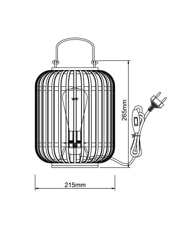 mit Schnurzwischenschalterinklusive Tragegrifffür LED-Leuchtmittel geeignetDie Tischleuchte Woodrow lässt sich auf vielfältige Weise in den Wohnbereich integrieren, sei es als stimmungsvolle Beleuchtung auf dem Nachttisch oder als Akzentbeleuchtung im Wohnzimmer. Hergestellt aus dem nachwachsenden und dadurch umweltfreundlichen Rohstoff Bambus erzeugen Sie mit dieser Leuchte eine gemütliche Wohnatmosphäre in Ihren Wohnräumen. Das natürliche Material hat eine besonders einladende Ausstrahlung.Im Lieferumfang sind keine Leuchtmittel inbegriffen. Ausgelegt ist die Leuchte für den Einsatz von Normallampen. Die Verwendung von LED-Leuchtmitteln ist aber möglich. Die Leuchte ist mit einem Schnurzwischenschalter ausgestattet. Das Kabel ist ca. 1,9 Meter lang.