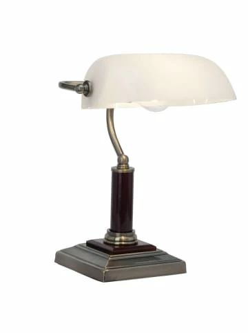 mit Schnurzwischenschalterdas Glas ist schwenkbarfür LED-Leuchtmittel geeignetDie funktionale Tischleuchte Bankir kann man vielseitig in den Arbeits- oder Wohnbereich integrieren. Sie kann als Leselicht oder auch rein dekorativ zum Einsatz kommen. Der Einsatz des Werkstoffs Holz lässt eine ansprechende Kombination aus Natur und Technik entstehen. Durch den Kopf ist der auszuleuchtende Bereich individuell anpassbar.Im Lieferumfang sind Leuchtmittel nicht enthalten. Konzipiert ist die Leuchte für die Verwendung von Normallampen. Auch umweltschonende LED-Leuchtmittel können eingesetzt werden. Durch den Schnurzwischenschalter kann die Tischleuchte mühelos geschaltet werden.