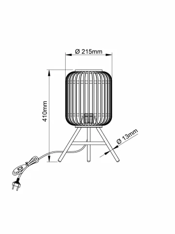 mit Schnurzwischenschalterfür LED-Leuchtmittel geeignetDie WOODROW Tischleuchte wird zum echten Eye-Catcher, egal auf welchem Tisch. Das minimalistische Design aus rustikalem Rattan und Metall versprüht ein ganz natürliches Ambiente. Die naturbelassene, helle Oberfläche des Rattans passt perfekt zum angesagten NATURE-Konzept. Hiermit holen Sie sich ein wenig Natur in Ihr Zuhause.Tischleuchten eignen sich perfekt zur Platzbeleuchtung, als Ergänzung zur Hauptbeleuchtung. Ob auf einem Beistelltisch, Nachttisch oder auf einer Kommode – egal wo die WOODROW Tischleuchte ihren Platz bei Ihnen finden wird, spendet sie einladendes Licht. Neben dem funktionalen Nutzen stellt sie gleichzeitig aber auch ein spannendes Dekorationselement dar. Sie können sowohl Normal- als auch LED-Lampen für diese Tischleuchte verwenden.