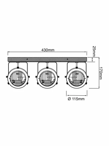 Köpfe schwenkbarfür LED-Leuchtmittel geeignetdimmbar über externen Dimmer bei Verwendung eines geeigneten LeuchtmittelsLeuchtmittel wechselbarOb einzeln oder im Zusammenspiel – Spots sind immer eine gute Wahl. Mit dem gerichteten Licht lassen sich Bereiche im Raum gezielt in Szene setzen. Setzen Sie mit dem 3-flammigen Deckenstrahler Carmen Wood ihr individuelles Beleuchtungskonzept um. Angebracht an Wand oder Decke macht die Leuchte immer eine gute Figur.Die Leuchte eignet sich für den Einsatz von Reflektorlampen. Leuchtmittel sind im Lieferumfang nicht enthalten. Auch energiesparende LED-Leuchtmittel können verwendet werden. Bei Verwendung entsprechender Leuchtmittel ist die Leuchte zudem dimmbar. Der zu beleuchtende Bereich kann durch die Köpfe flexibel eingestellt werden. Das erforderliche Installationsmaterial ist im Lieferumfang enthalten.