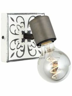 Kopf schwenkbarfür LED-Leuchtmittel geeignetdimmbar über externen Dimmer bei Verwendung eines geeigneten LeuchtmittelsDurch die vielseitigen Anwendungsbereiche sind Spots eine gern gesehene Ergänzung zu den starren Wand- und Deckenleuchten. Mit dem ausrichtbaren Licht lassen sich gezielt Bereiche im Raum beleuchten. Wandstrahler Vagos ermöglicht Ihnen die Umsetzung einer individuellen Beleuchtungslösung für Ihr Zuhause. Angebracht an Wand oder Decke macht die Leuchte immer eine gute Figur. Wandstrahler vereint Historie mit Moderne. Das einprägsame Muster ist inspiriert von portugiesischen Azulejos und verleiht der Leuchte einen antiken Touch. Kombiniert mit modernen Elementen, wird sie auf jeden Fall dem aktuellen Trend gerecht.Für Normallampen geeignet, sind im Lieferumfang jedoch Leuchtmittel nicht inkludiert. Auch energiesparende LED-Leuchtmittel können verwendet werden. Die Leuchte ist dimmbar sofern geeignete Leuchtmittel verwendet werden. Durch Kopf ist der zu beleuchtende Bereich individuell justierbar. Das benötigte Montagematerial liegt der Leuchte vollständig bei.